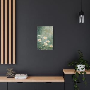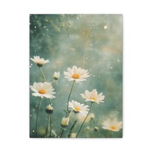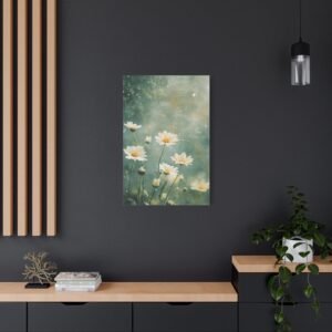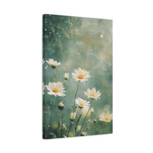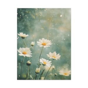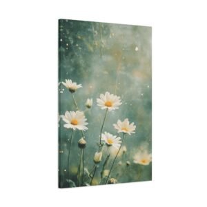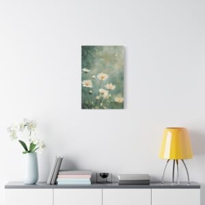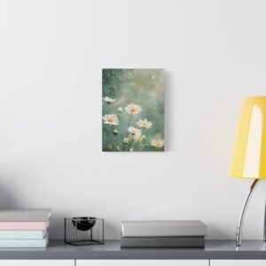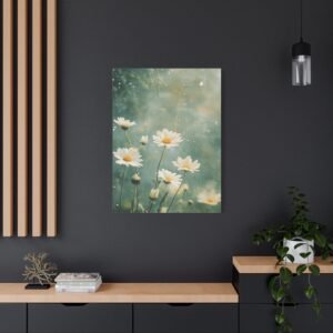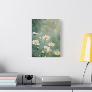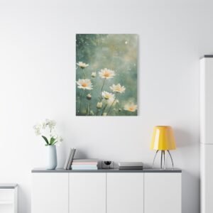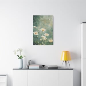 Cette toile romantique s’intègre parfaitement dans une chambre sereine ou un salon lumineux. Sa palette douce et naturelle crée une atmosphère apaisante, idéale pour les espaces de vie où vous recherchez calme et harmonie. L’effet éthéré des marguerites apporte une touche de légèreté à votre décoration intérieure.