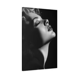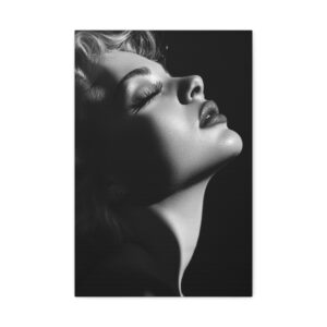 Sublimez votre intérieur avec ce portrait saisissant de la plus grande icône hollywoodienne. Les contrastes marqués entre ombres et lumières révèlent toute l’intensité du regard de Marilyn Monroe, capturant l’essence même du glamour des années 50.
