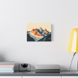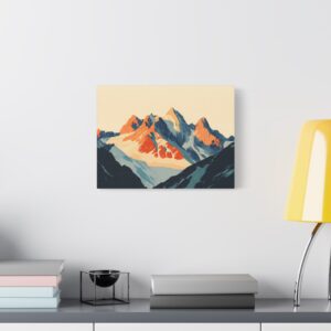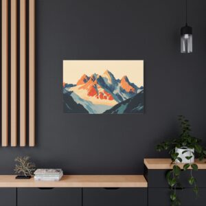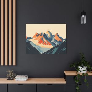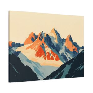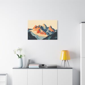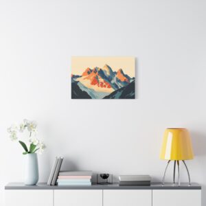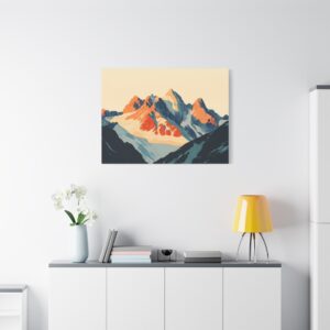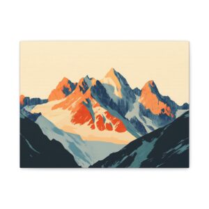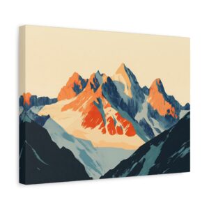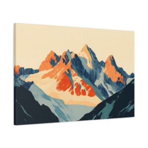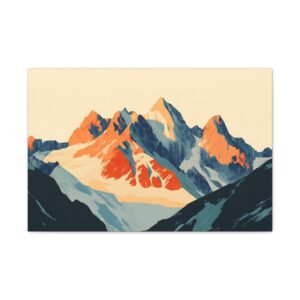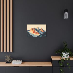 Laissez-vous transporter par ce tableau montagne vintage inspiré des légendaires affiches publicitaires suisses des années 60. Les *sommets majestueux* se découpent dans une composition minimaliste où les formes géométriques audacieuses créent une perspective saisissante.