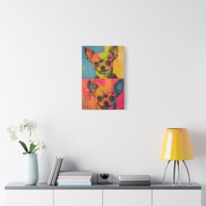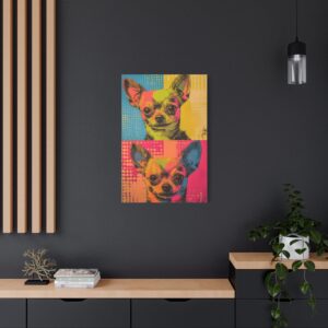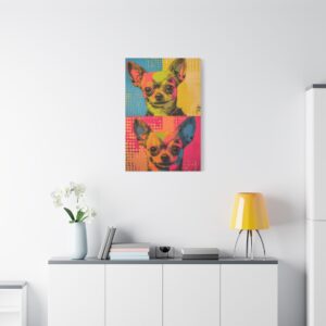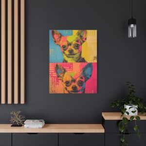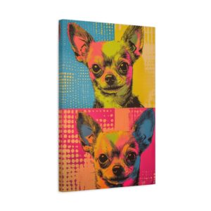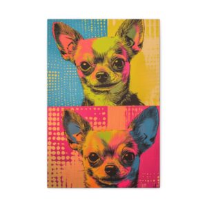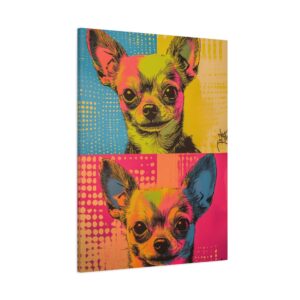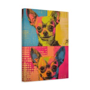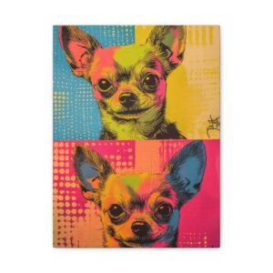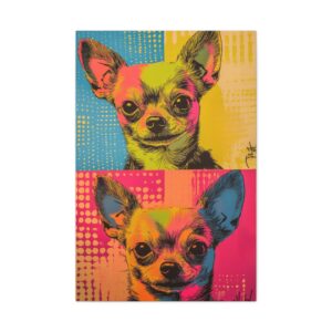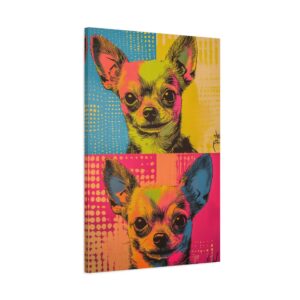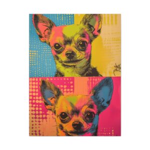 Plongez dans l’univers énergique du Pop Art avec ce tableau multicolore Chihuahua directement inspiré du style légendaire d’Andy Warhol. Cette œuvre contemporaine capture l’esprit joueur de ce petit compagnon canin à travers quatre portraits éclatants, où se mêlent rose vif, bleu électrique, jaune néon et vert lime.