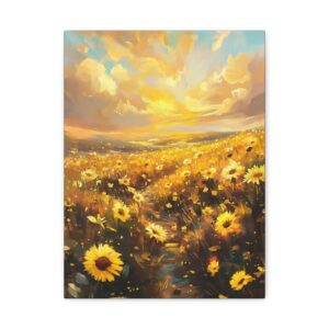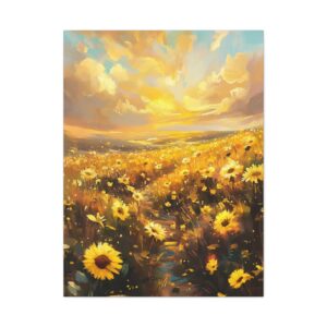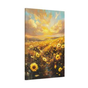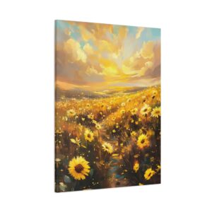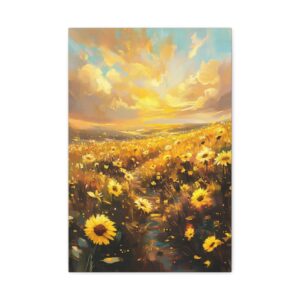 Plongez dans la chaleur d’un coucher de soleil impressionniste avec ce tableau captivant de tournesols dorés. Inspiré par le style de Van Gogh, les coups de pinceau épais et texturés créent une œuvre vibrante qui illuminera instantanément votre intérieur.