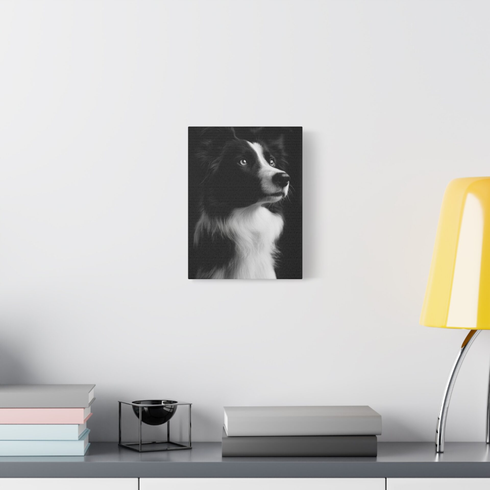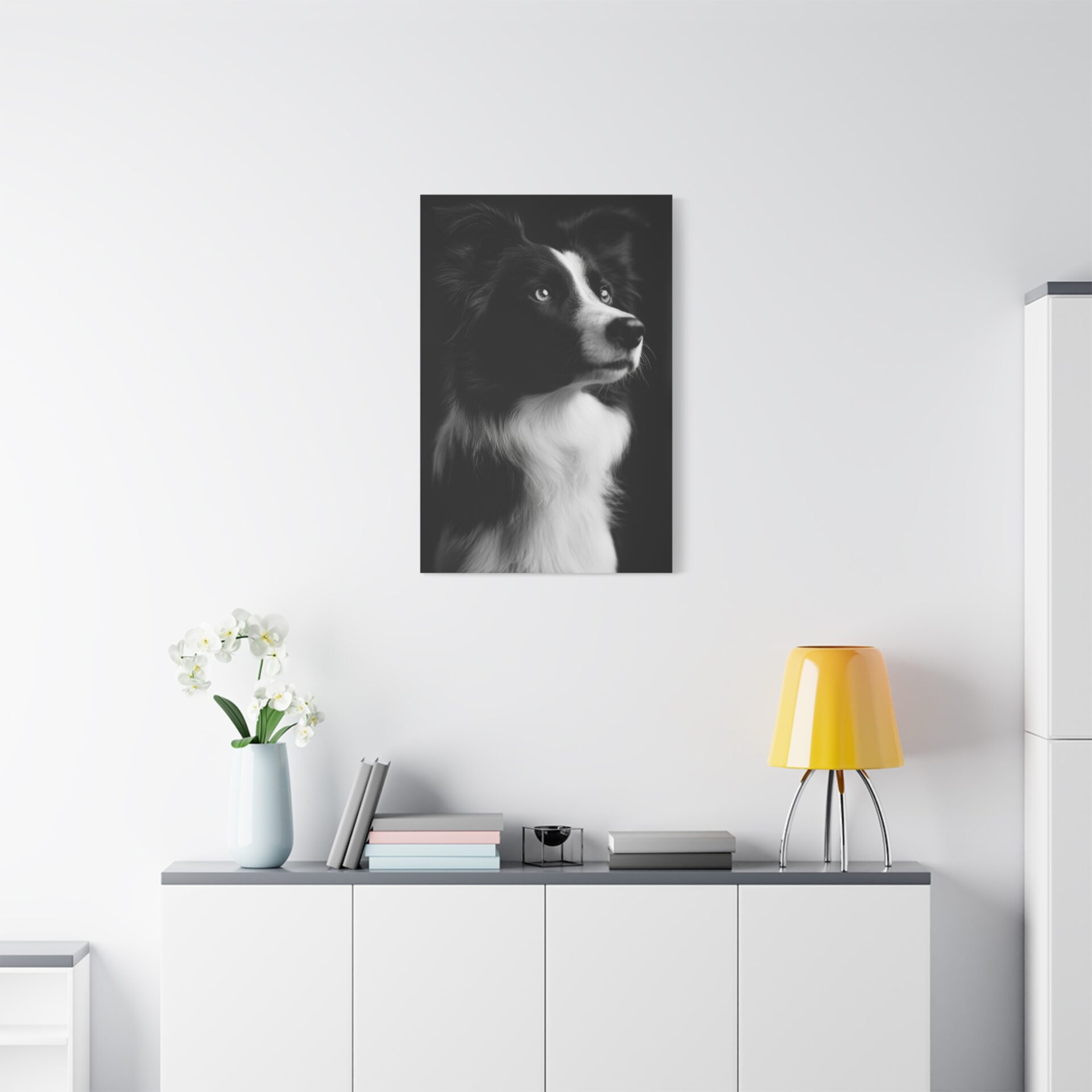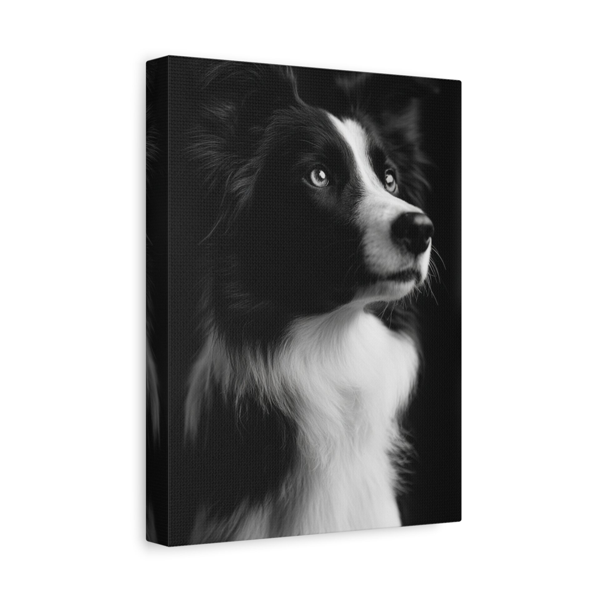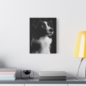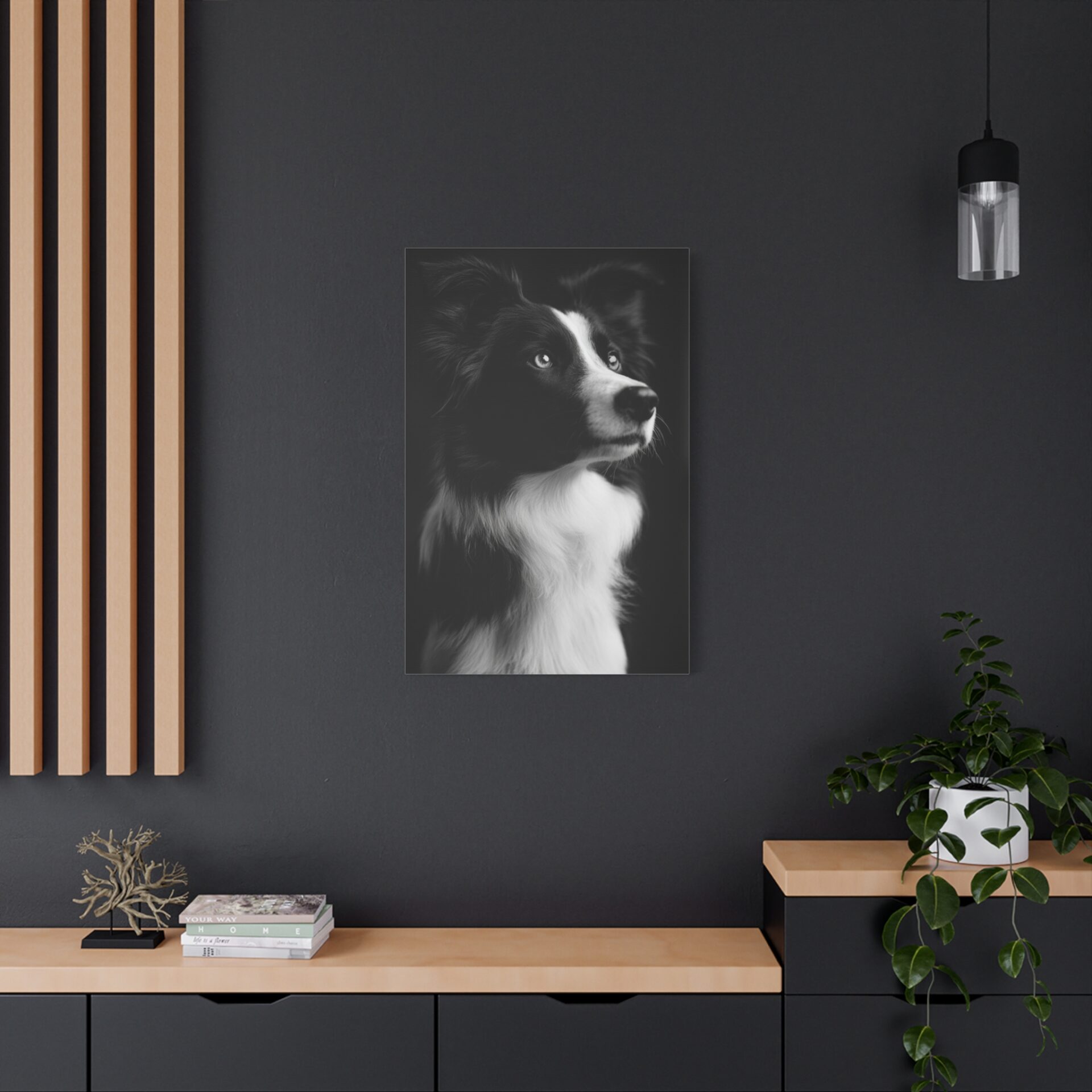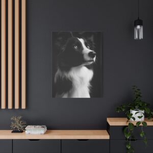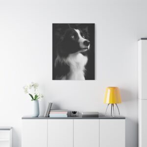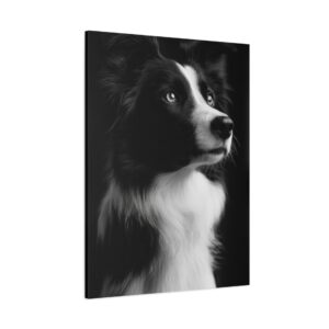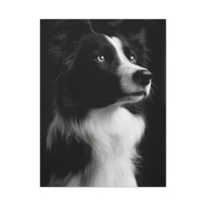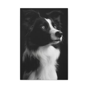 Offrez une touche de sophistication à votre intérieur avec ce tableau noir et blanc du Border Collie. Ce portrait artistique en studio met en valeur les motifs magnifiques du pelage de ce chien, ses yeux perçants et son expression alerte. La photographie en monochrome sublime la beauté de cette race, tout en apportant une touche intemporelle à votre décoration. Ce tableau trouvera parfaitement sa place au-dessus de votre cheminée, pour une esthétique luxueuse.