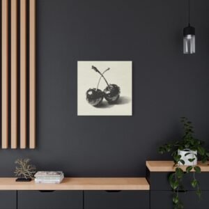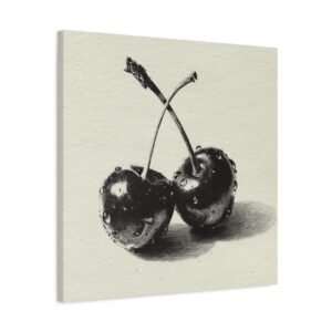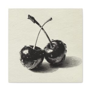 Le Tableau Noir & Blanc Cerise est une peinture artistique en noir et blanc de cerises mûres avec des gouttelettes d’eau. Elle est réalisée dans un style d’illustration botanique vintage, avec une technique délicate de plume et d’encre. La composition minimaliste sur du papier crème, avec des ombres et des reflets subtils, apportera une touche d’élégance à votre intérieur. Ce tableau est parfait pour apporter une touche de nature à votre salon ou votre bureau.