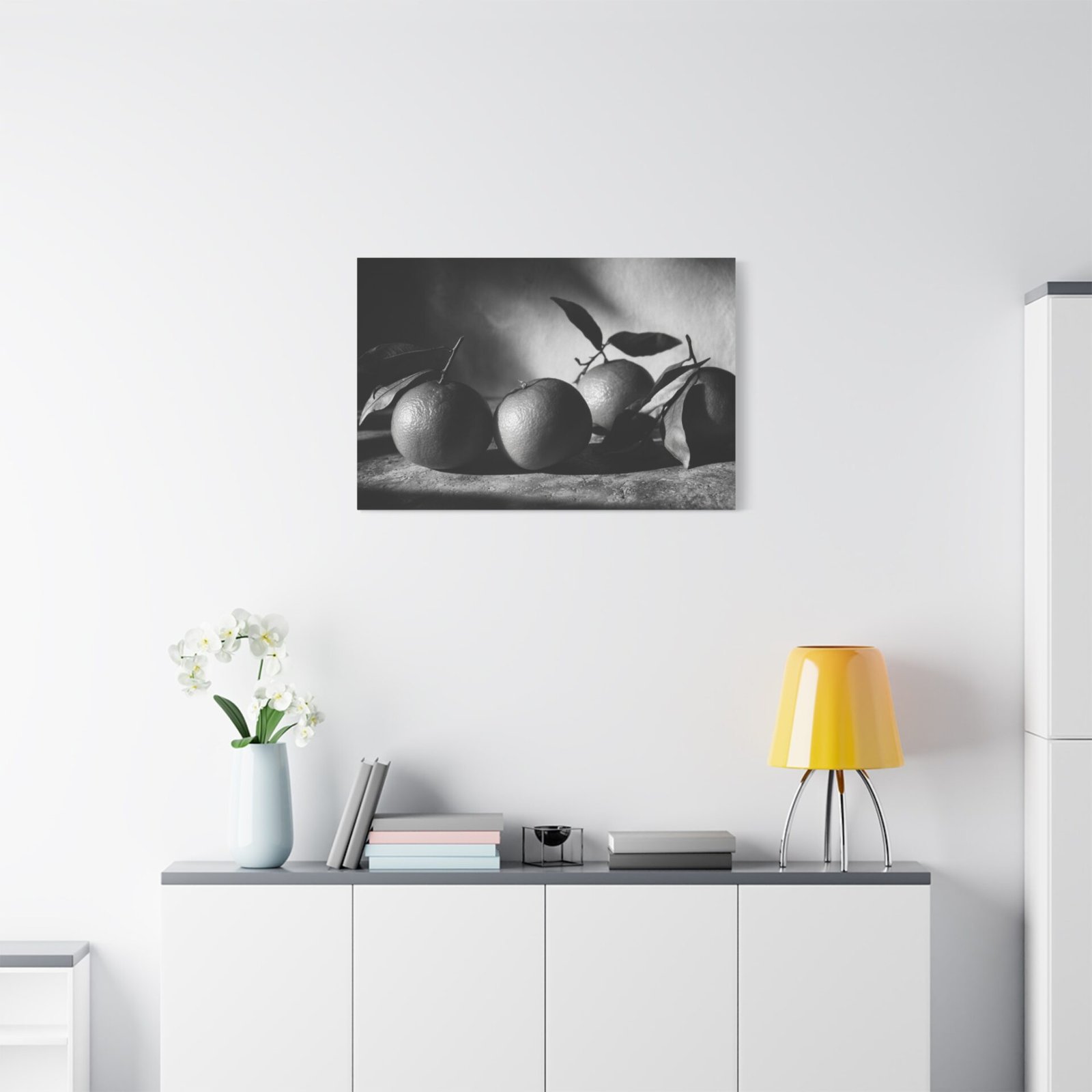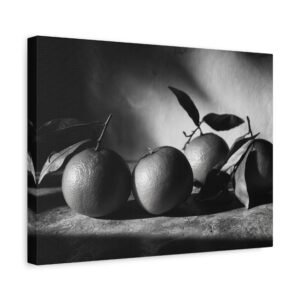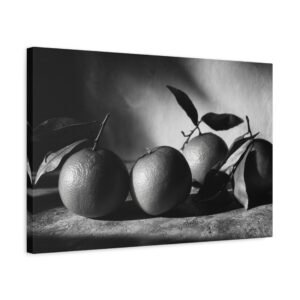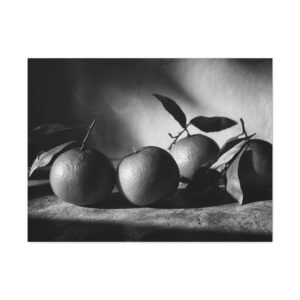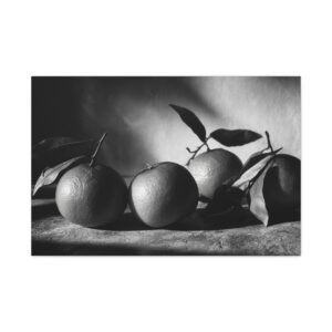 Découvrez ce Tableau Noir & Blanc Clémentine, une photographie d’art en noir et blanc de clémentines. L’éclairage dramatique et la composition monochrome à haut contraste créent un arrangement de nature morte élégant. La surface texturée, les ombres douces et les points forts lumineux ajoutent une touche de sophistication à votre décoration. Avec son esthétique vintage de chambre noire et son grain photographique classique, ce tableau est parfait pour apporter une touche d’art sophistiqué à votre cuisine.