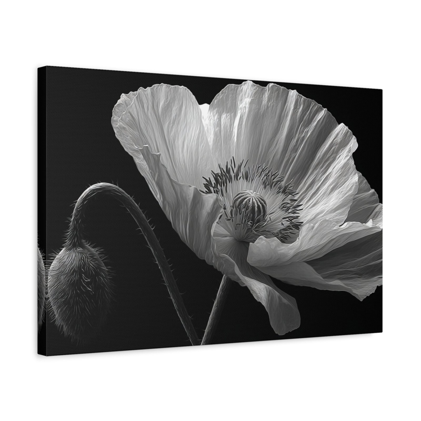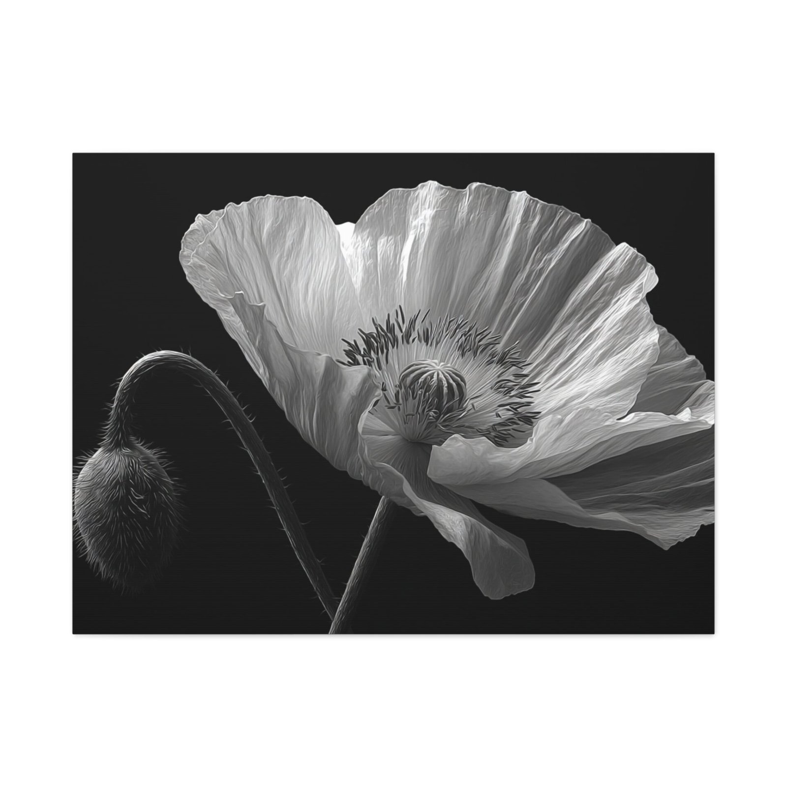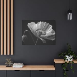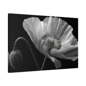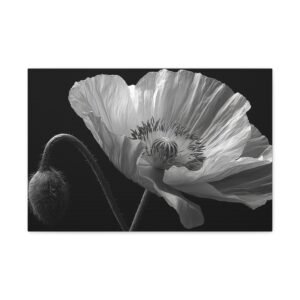 Découvrez la beauté épurée de notre Tableau Noir & Blanc Coquelicot. Cette œuvre délicate et minimaliste met en scène une fleur de coquelicot en pleine floraison, capturée en photographie noir et blanc. L’éclairage doux et dramatique met en valeur les veines translucides de ses pétales, offrant une étude botanique d’une rare finesse. L’ombre et la lumière jouent sur la texture détaillée des pétales, révélant leur qualité papier. Le contraste monochrome ajoute une dimension artistique à cette composition épurée.