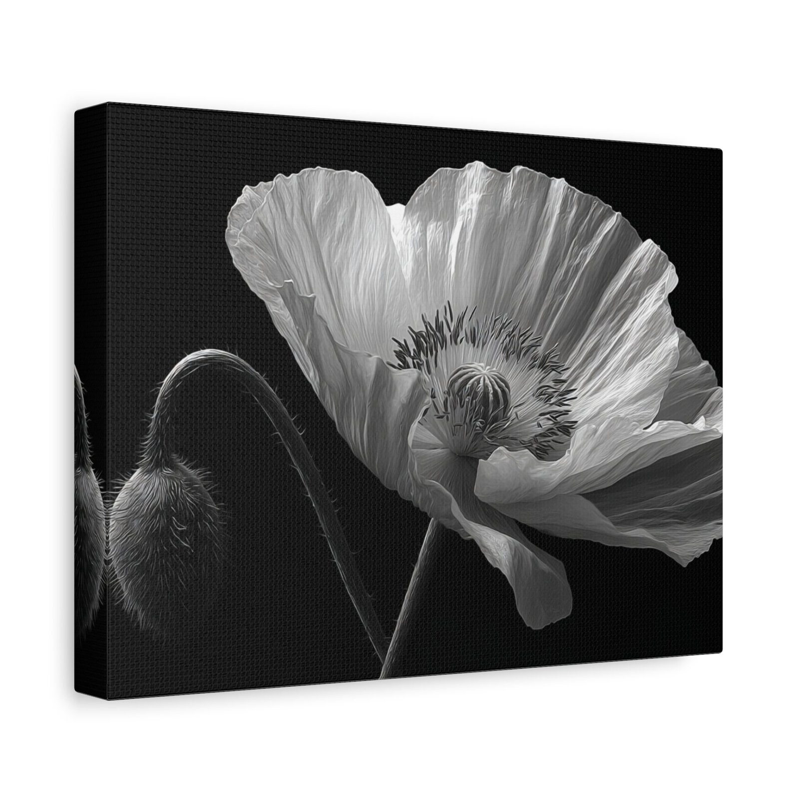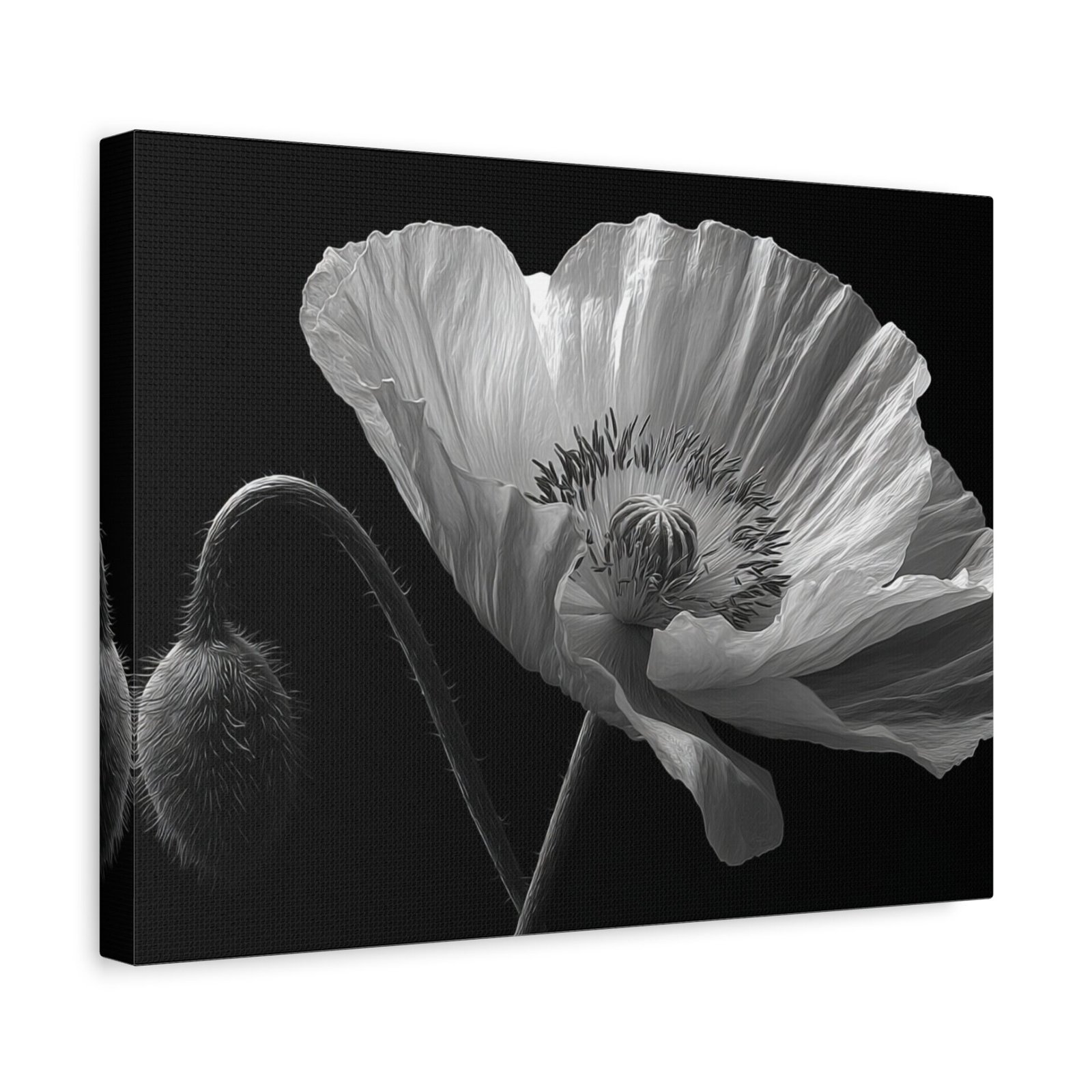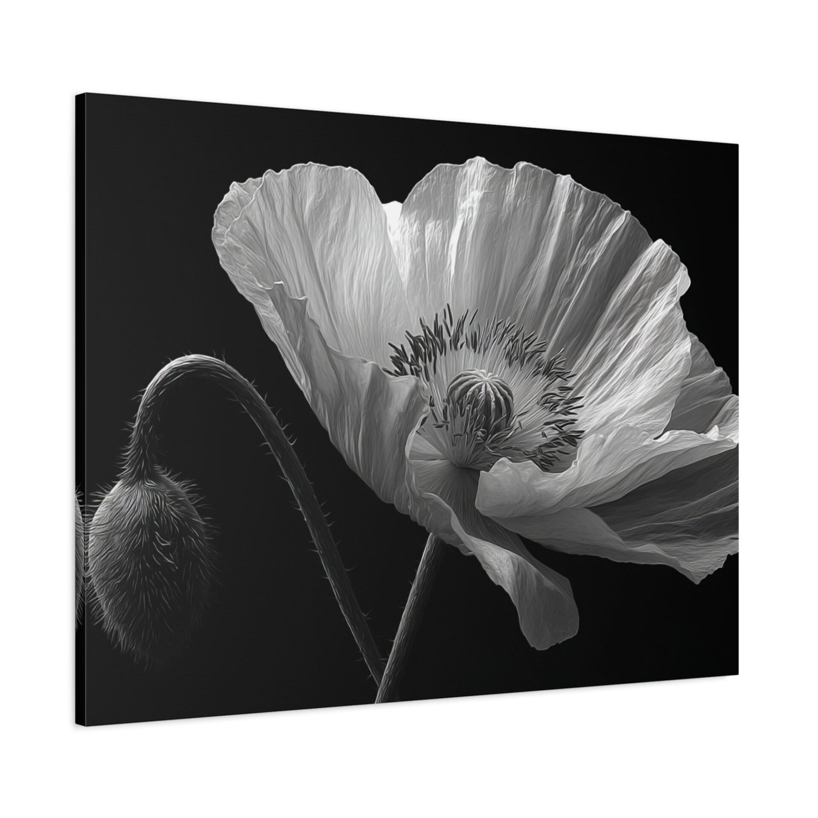 Découvrez la beauté épurée de notre Tableau Noir & Blanc Coquelicot. Cette œuvre délicate et minimaliste met en scène une fleur de coquelicot en pleine floraison, capturée en photographie noir et blanc. L’éclairage doux et dramatique met en valeur les veines translucides de ses pétales, offrant une étude botanique d’une rare finesse. L’ombre et la lumière jouent sur la texture détaillée des pétales, révélant leur qualité papier. Le contraste monochrome ajoute une dimension artistique à cette composition épurée.
