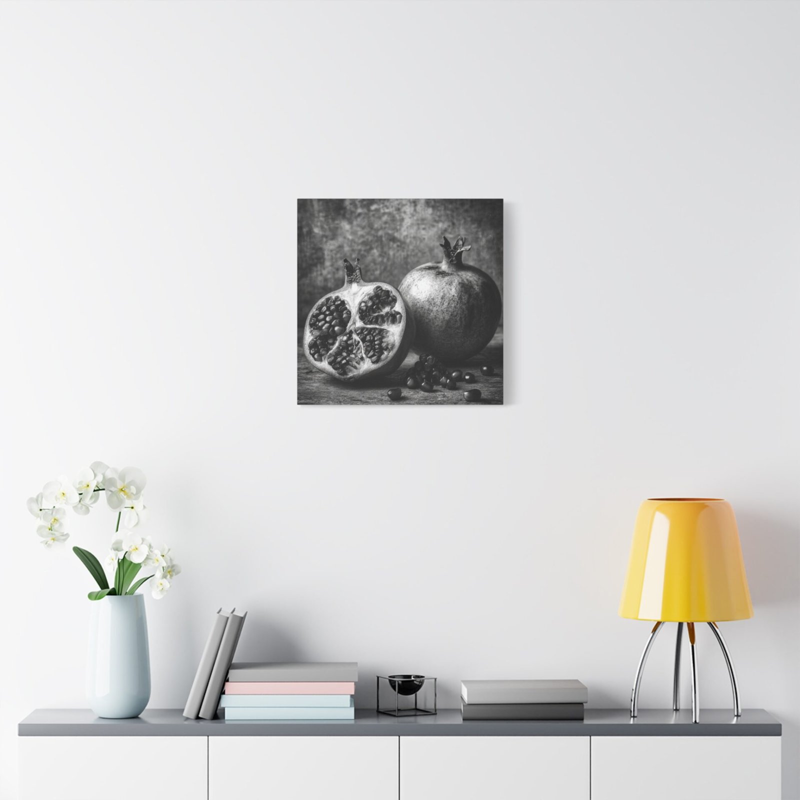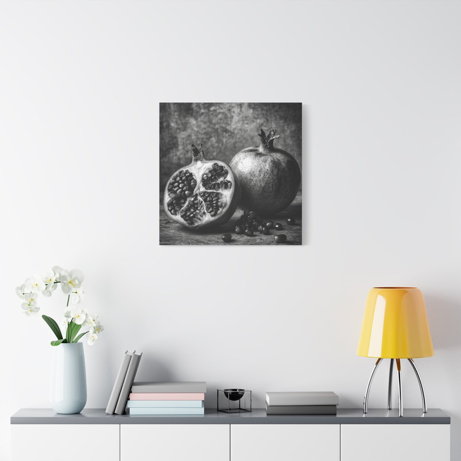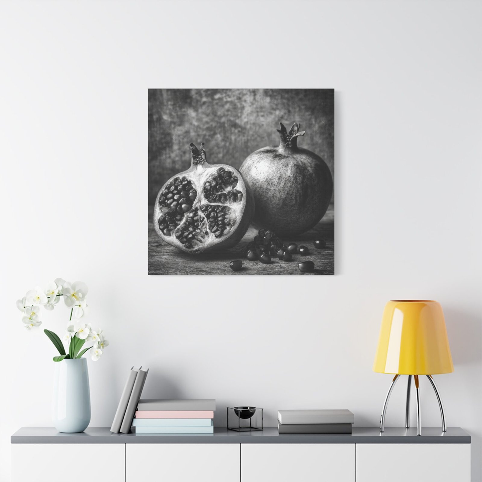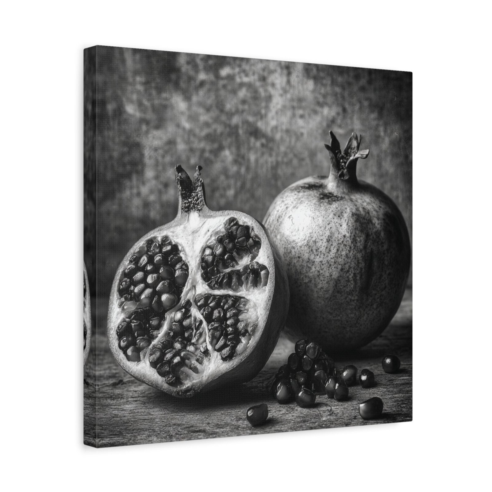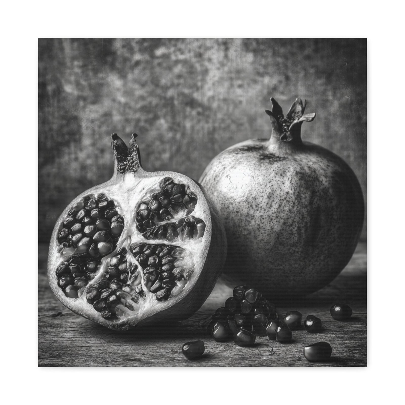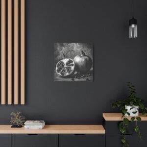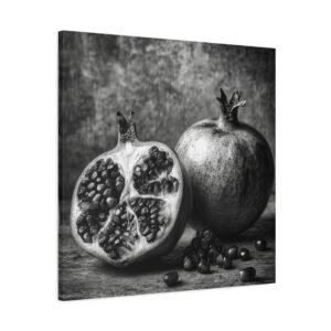 Admirez la complexité de la nature avec ce Tableau Noir & Blanc Grenade. Cette photographie d’art en noir et blanc met en scène une grenade coupée, révélant des motifs de graines complexes. La composition monochromatique, aux textures riches et au dramatique clair-obscur, évoque l’esthétique d’un laboratoire photographique vintage. L’arrangement élégant de la nature morte sur une surface rustique apporte une touche d’élégance à votre décoration intérieure, dans un style classique de décoration murale de cuisine.