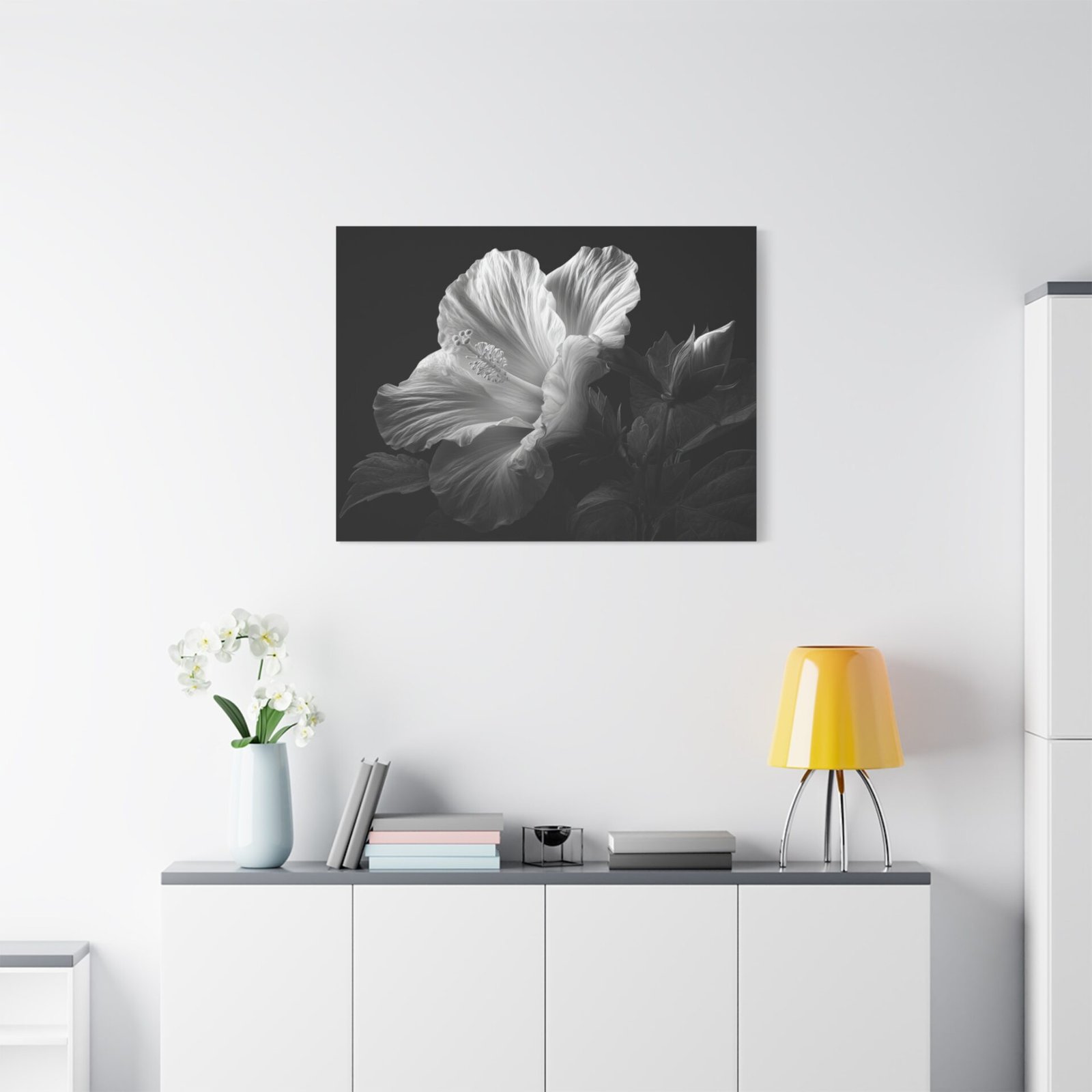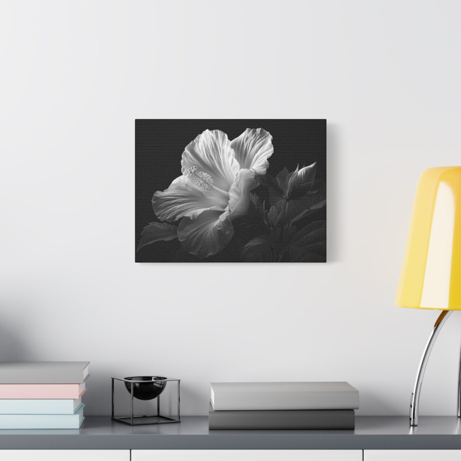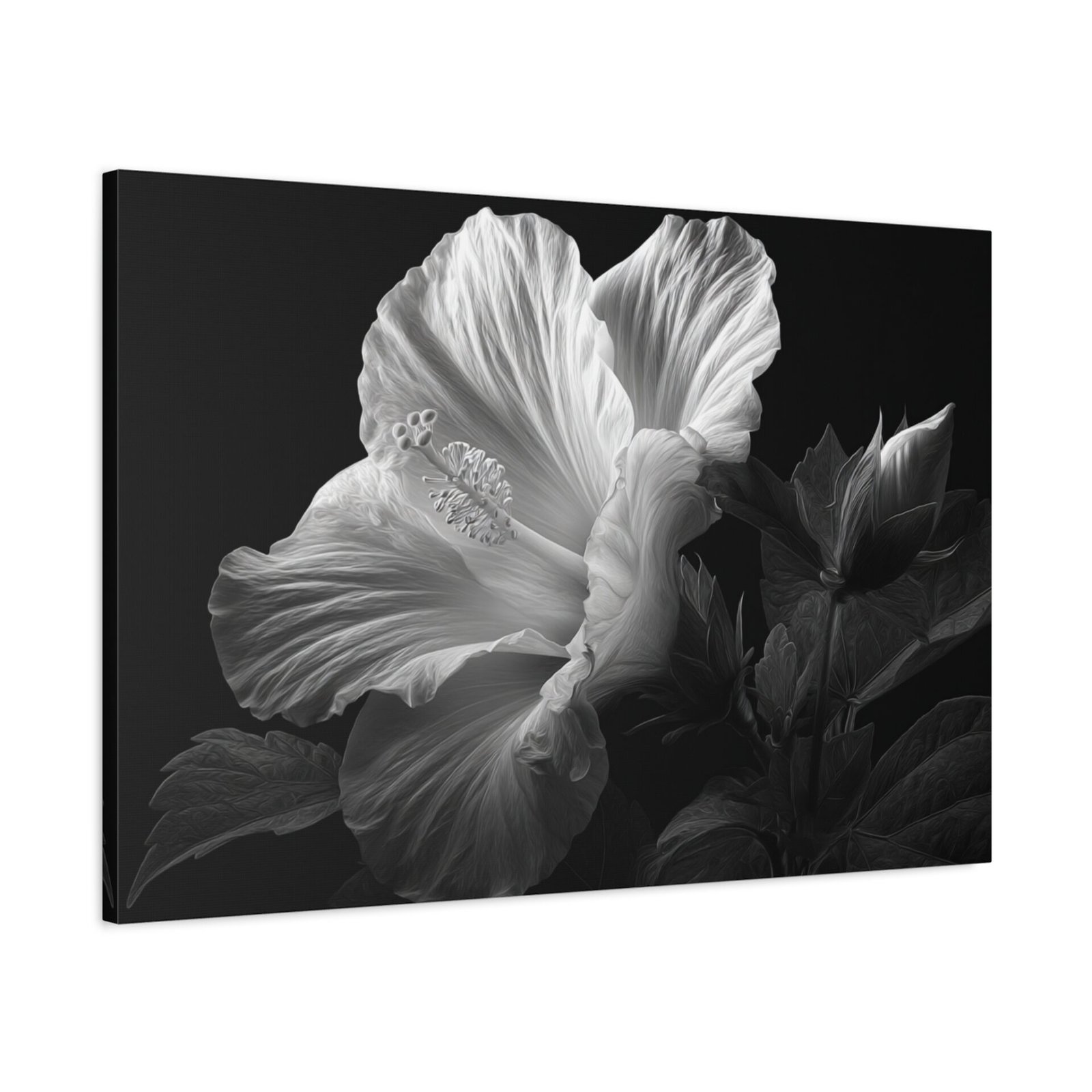 Tableau Noir & Blanc Hibiscus : Illustration Botanique Dramatique et Élégante