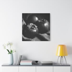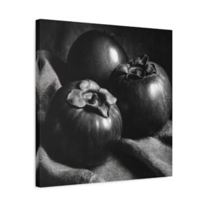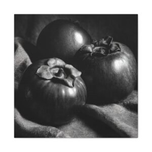 Découvrez notre Tableau Noir & Blanc Kaki, une œuvre d’art photographique en noir et blanc de persimmons mûrs à la peau lisse et brillante. Cette composition monochromatique riche en gradients tonals offre un éclairage dramatique de style clair-obscur. Avec son esthétique vintage de chambre noire et son arrangement élégant de nature morte sur un tissu texturé, ce tableau apporte une touche de style classique à votre cuisine ou à votre salle à manger. L’effet kaki ajoute une nuance subtile et moderne à l’ensemble, rendant cette pièce à la fois intemporelle et contemporaine.