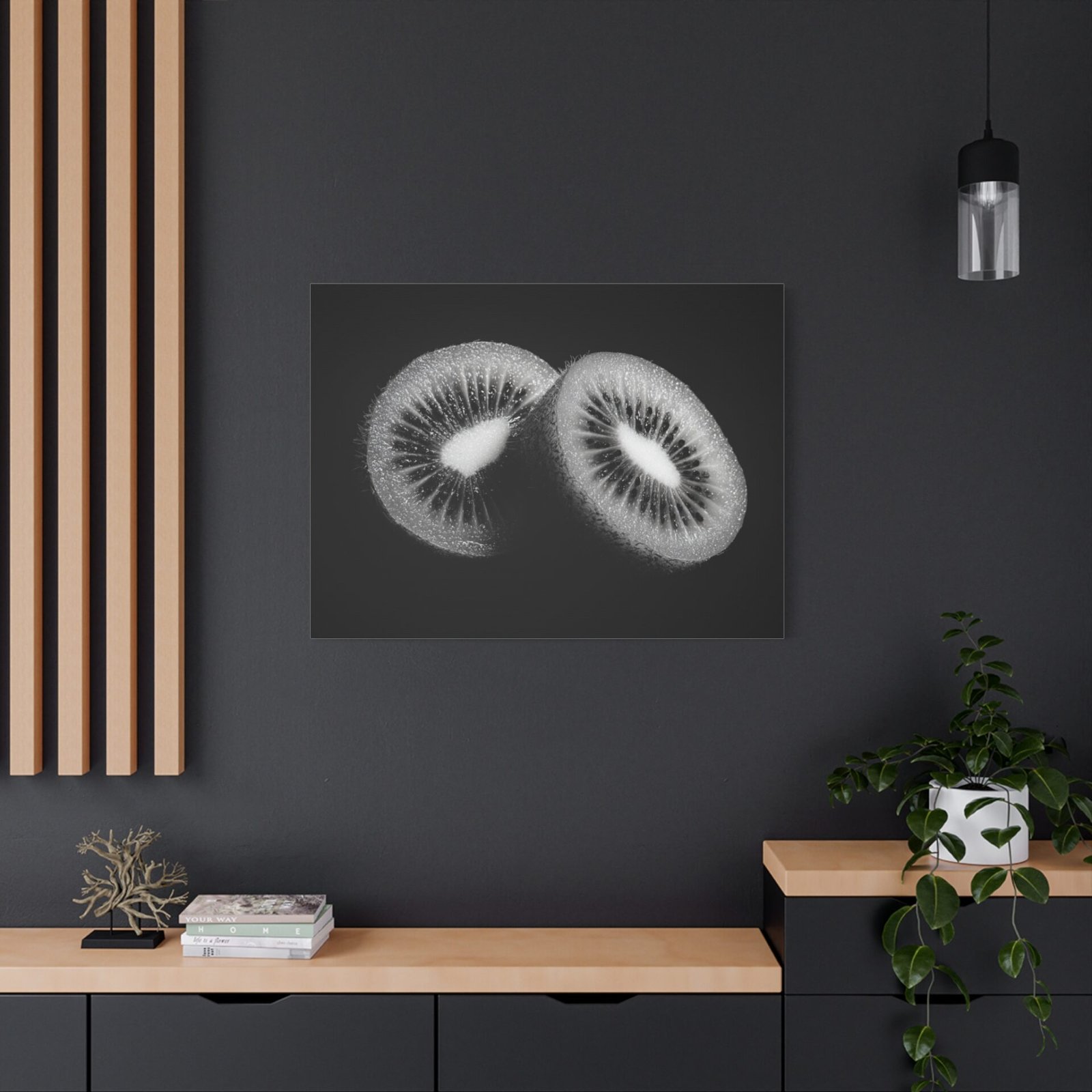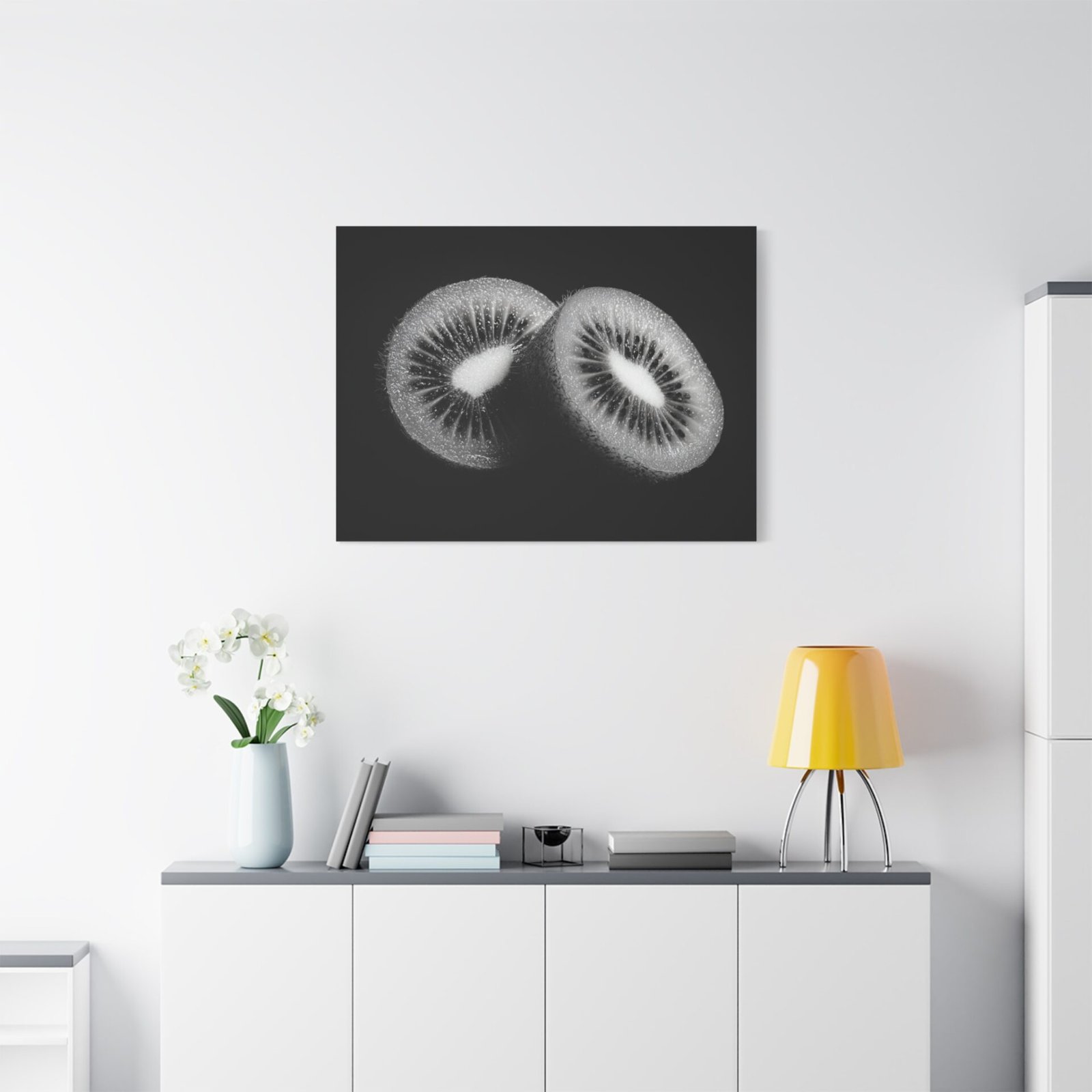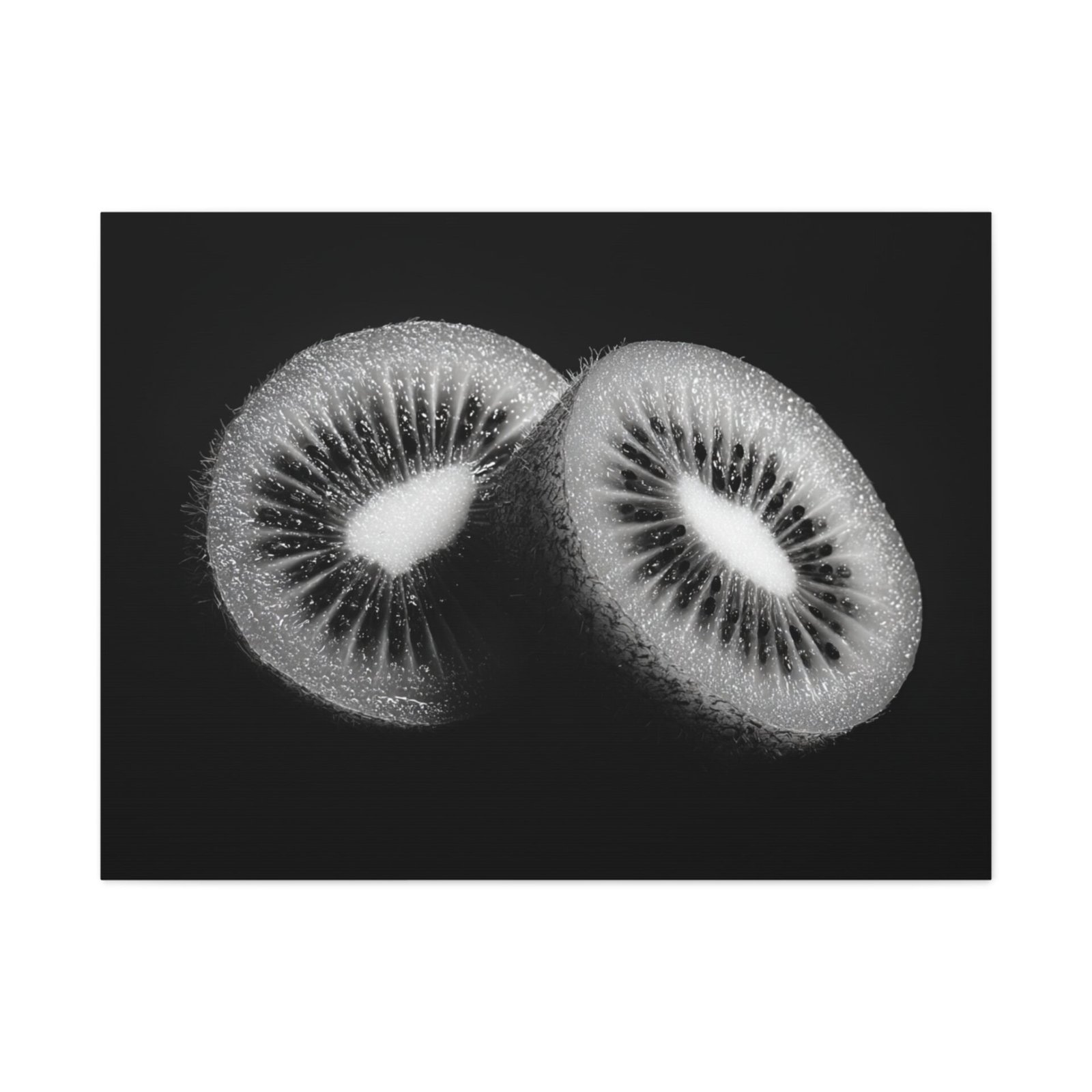 Découvrez notre Tableau Noir & Blanc Kiwi, une magnifique photographie en studio noir et blanc d’un kiwi tranché. Grâce à un éclairage professionnel, ce tableau présente un contraste dramatique, mettant en valeur les motifs de graines complexes du fruit. Avec son style de photographie alimentaire commerciale haut de gamme, le tableau offre des détails nets et des gradients de tons riches. Ce tableau monochromatique est idéal pour apporter une touche contemporaine et artistique à votre intérieur.