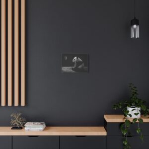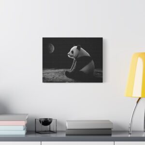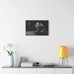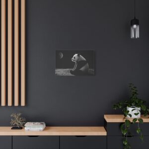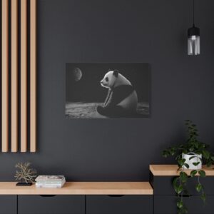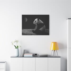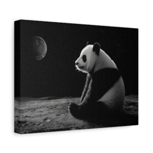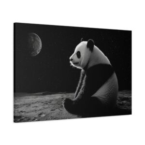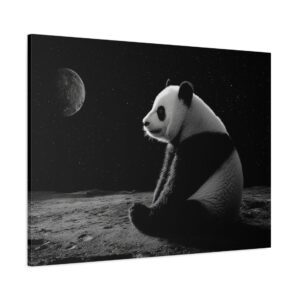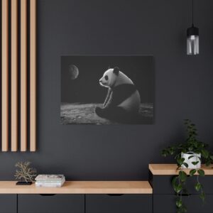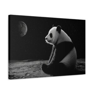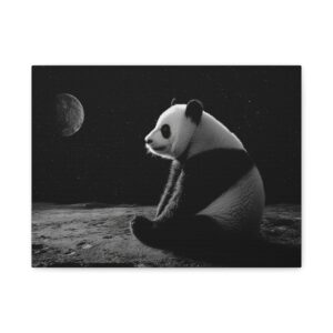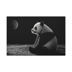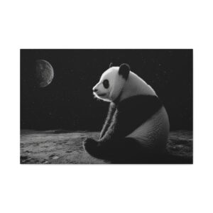 Plongez dans une atmosphère onirique avec ce tableau Noir & Blanc – Panda sur la lune. Cette composition surréaliste en noir et blanc présente un panda géant assis paisiblement sur la surface lunaire, la Terre visible dans le fond étoilé. Le tableau crée un contraste artistique entre les motifs naturels de la fourrure du panda et le paysage lunaire austère. Les douces ombres sur les cratères lunaires ajoutent une profondeur à cette scène spatiale fantaisiste.