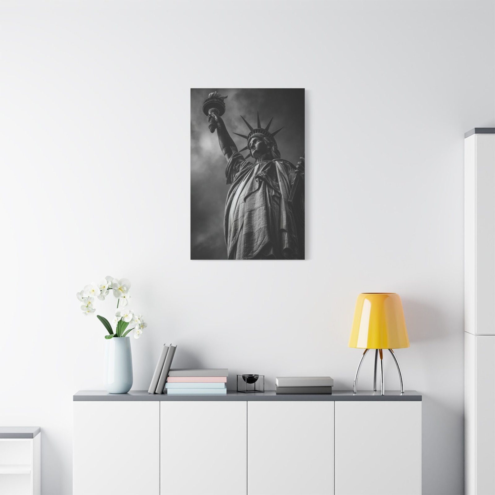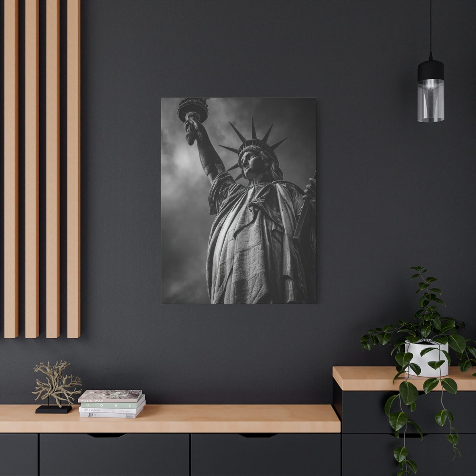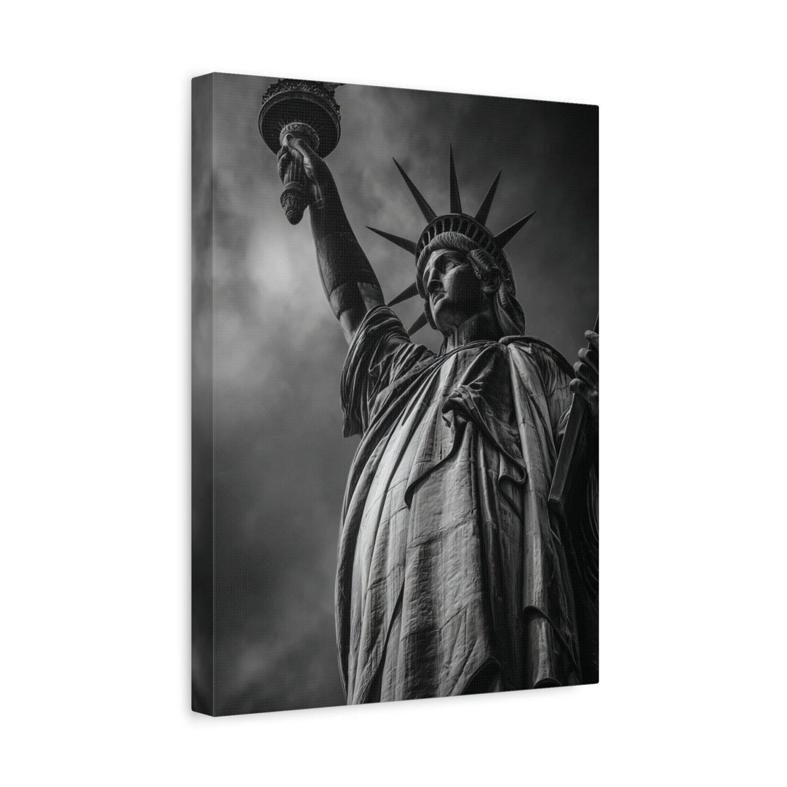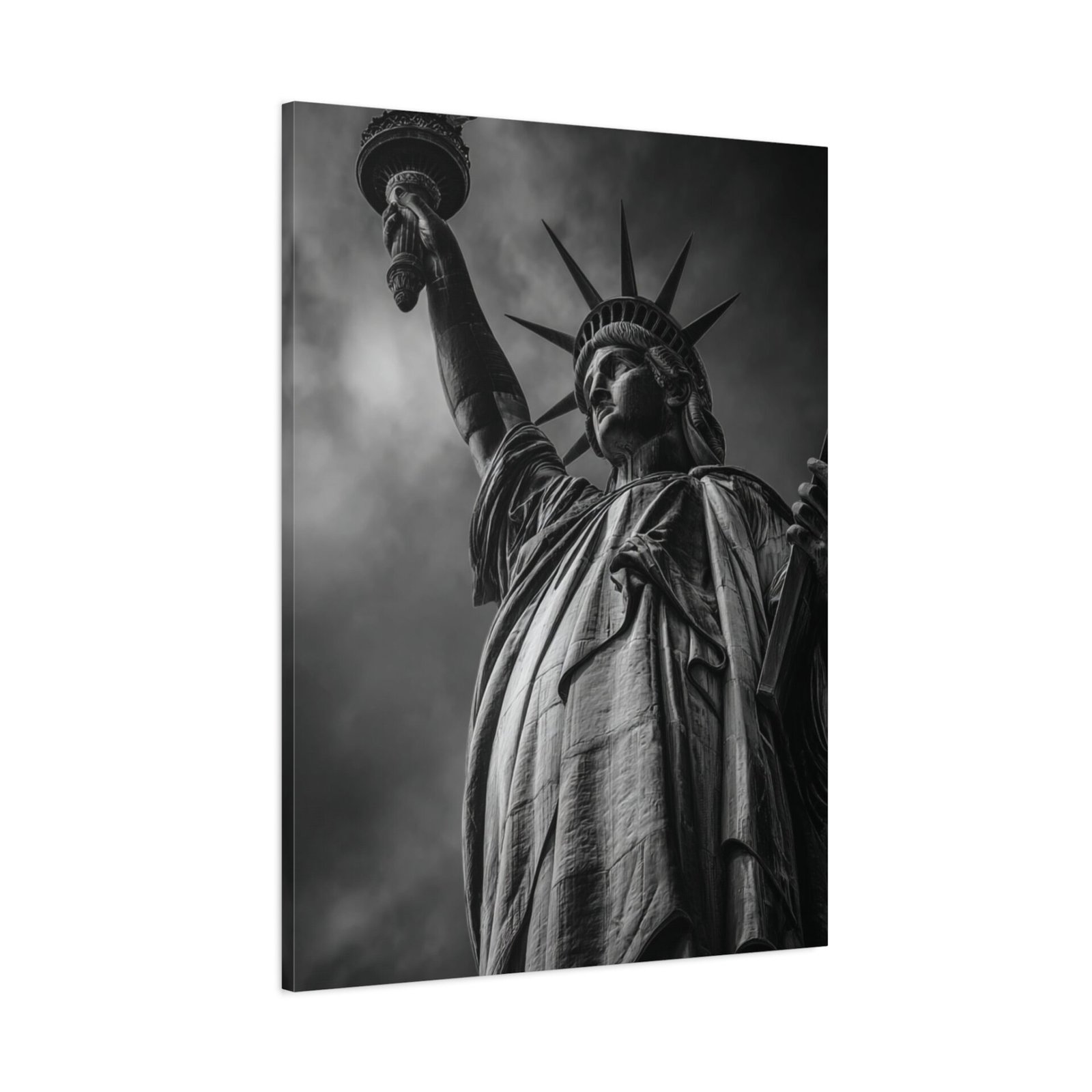 Sublimez votre intérieur avec ce Tableau Noir & Blanc : Statue de la Liberté. Cette photographie en noir et blanc représente de manière majestueuse la Statue de la Liberté se dressant fièrement sur Liberty Island. Le cliché, pris sous un angle ascendant puissant, met en valeur les détails intriqués des robes drapées et de la couronne. Le flambeau, tenu haut dans le ciel orageux, crée un contraste saisissant. Cette pièce est un véritable chef-d’œuvre monochrome, mettant en lumière les textures sculpturales de ce symbole patriotique. Le port de New York en arrière-plan ajoute une touche de cinématographie à la composition. Ce tableau sera parfait pour apporter une touche d’art et d’histoire à votre décoration.