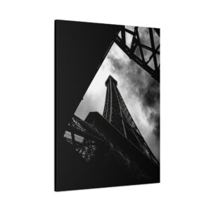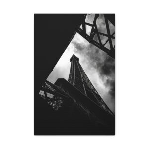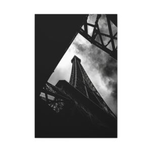 Capturez l’essence de la Ville Lumière avec cette photographie architecturale saisissante de la Tour Eiffel. La perspective en contre-plongée et les contrastes marqués créent une composition dramatique qui sublime l’icône parisienne comme jamais.