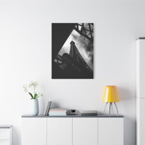 Créez un style galerie d’art en l’intégrant dans une composition murale avec d’autres photographies urbaines en noir et blanc. Son format vertical et sa composition artistique permettent de structurer l’espace tout en apportant une touche de sophistication parisienne à votre intérieur.