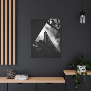 Ce cliché architectural en noir et blanc s’impose naturellement dans un intérieur contemporain. Ses lignes géométriques puissantes et son atmosphère envoûtante en font une pièce maîtresse idéale pour un salon moderne ou un bureau élégant. Pour un effet maximal, associez-le à des éléments décoratifs aux finitions métalliques ou des accessoires art déco.
