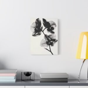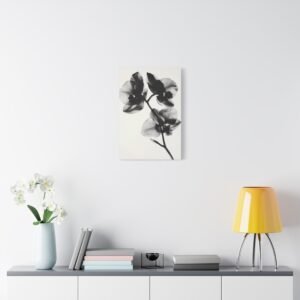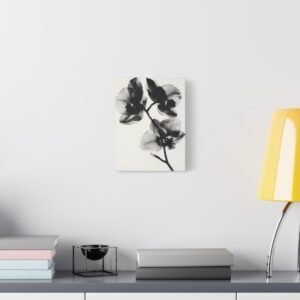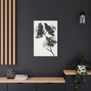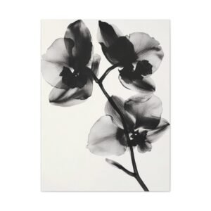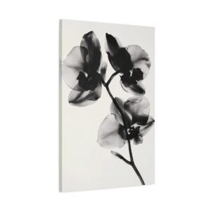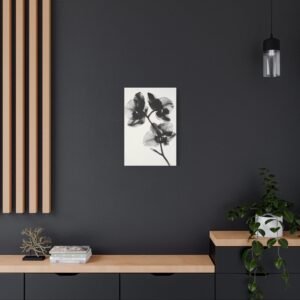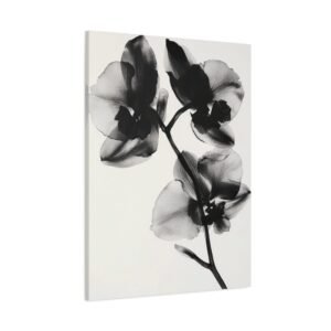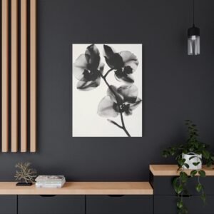 Découvrez la sophistication minimaliste de cette orchidée sombre, capturée dans une technique d’encre lavée contemporaine. Les coups de pinceau fluides créent un contraste saisissant entre la fleur mystérieuse et son fond clair, insufflant une atmosphère de luxe raffiné.