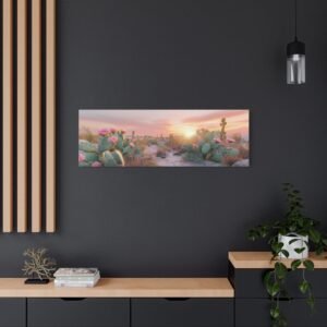 Offrez à votre intérieur un souffle de beauté désertique avec ce panorama envoûtant où les cactus fleuris aux tons roses se mêlent aux succulentes d’un vert émeraude saisissant. La lumière dorée du couchant crée une ambiance chaleureuse qui transformera instantanément votre espace.