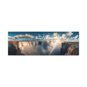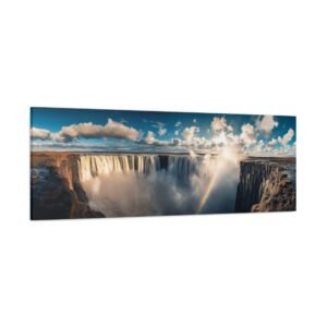 La qualité photoréaliste et les détails ultra-précis de ce tableau panoramique vous transporteront instantanément au cœur d’un paysage grandiose. Les jeux de lumière cinématographiques subliment l’écume de l’eau, créant un arc-en-ciel naturel qui apporte une touche de magie à votre décor.