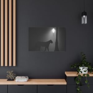Parfait pour ajouter une touche de suspense et d’élégance à votre décoration, ce tableau s’intégrera parfaitement dans un salon, une chambre ou un bureau au style contemporain. Pour un effet encore plus dramatique, placez-le dans un espace où l’éclairage mettra en valeur ses contrastes.