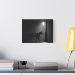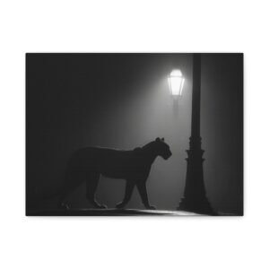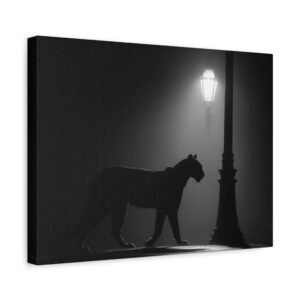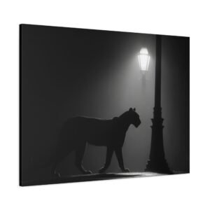 Entrez dans un monde de mystère et de suspense avec notre Tableau Panthère – Silhouette sous un Réverbère. Cette oeuvre saisissante présente une panthère élégante, éclairée par un seul réverbère vintage, dans un décor urbain nocturne. L’éclairage noir crée un contraste fort, soulignant la forme élancée de la panthère et conférant à l’ensemble une esthétique digne d’un film de super-héros. Ce tableau aux accents cinématographiques vous plonge dans une ambiance mystérieuse où la figure féline émerge des ombres, son puissant port de tête témoignant de sa force et de sa vigilance.