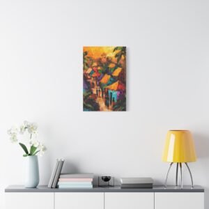 Ce tableau au format portrait 2:3 s’intègre parfaitement dans un salon moderne ou une entrée stylée. Son style unique, alliant abstraction et réalisme, dialogue magnifiquement avec des meubles aux lignes épurées et des accessoires en fibres naturelles. Les touches audacieuses apportent cette dimension ethnique chic tant recherchée en décoration contemporaine.