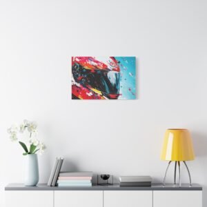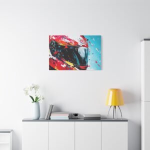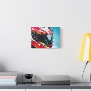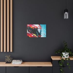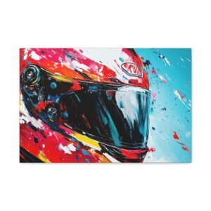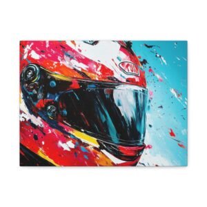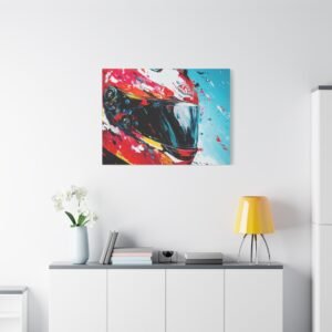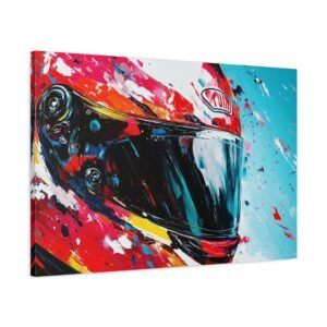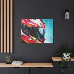 Apportez une touche de design contemporain à votre intérieur avec cette œuvre percutante alliant technologie et art urbain. Les éclaboussures de peinture dynamiques et les couleurs racing vibrantes transforment un casque de moto en une véritable explosion artistique.