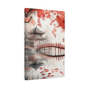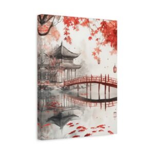 Laissez-vous transporter par cette composition japonaise authentique qui capture l’essence même des jardins ancestraux de Kyoto. Les érables rouges se reflétant dans l’étang aux koïs créent une harmonie visuelle saisissante, parfaite pour insuffler une ambiance zen à votre intérieur.