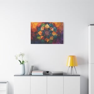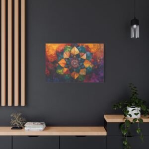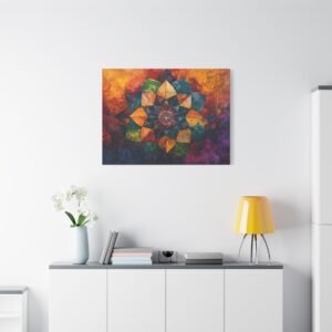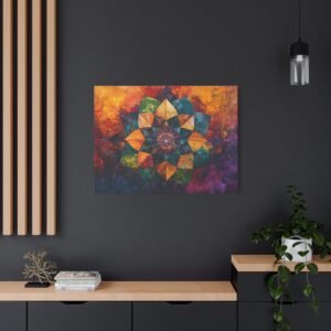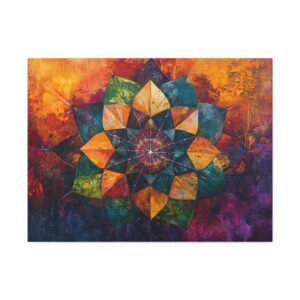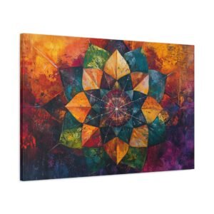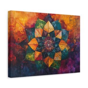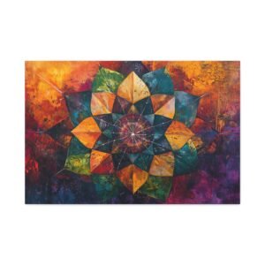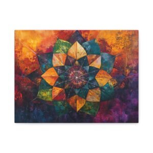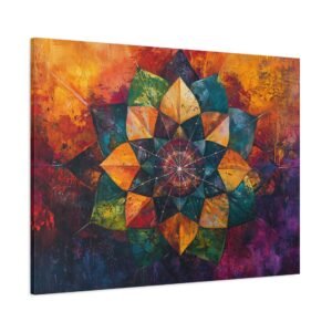 Découvrez l’alliance unique entre texture picturale et géométrie sacrée dans ce mandala contemporain. Les coups de pinceau expressifs et la technique impasto créent une profondeur saisissante, tandis que les couleurs vibrantes se fondent harmonieusement, évoquant un mouvement perpétuel sur votre mur.