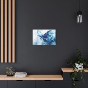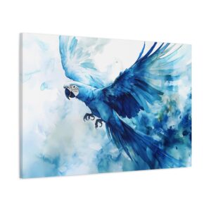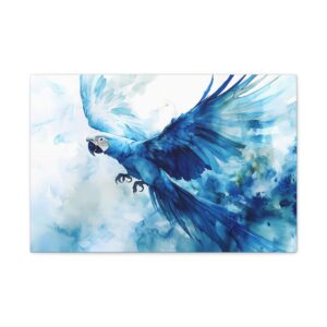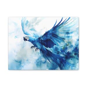 Laissez-vous porter par cette aquarelle éthérée capturant le vol majestueux d’un ara hyacinthe. Les plumes d’un bleu profond se déploient avec grâce, entourées de tourbillons abstraits aux nuances de céruléen et de turquoise.