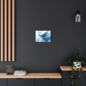 Les coups de pinceau délicats créent une atmosphère onirique où les tons de saphir et d’azur se fondent harmonieusement sur un fond minimaliste. La composition artistique et la profondeur dramatique insufflent un mouvement captivant qui anime instantanément votre espace.