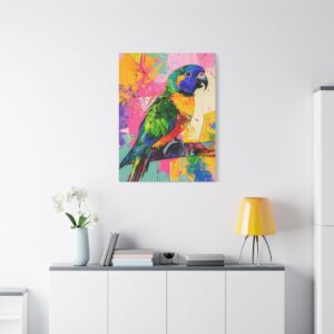 Transformez votre intérieur avec cette œuvre pop art vibrante mettant en scène un perroquet loriquet arc-en-ciel. Dans un style inspiré de Warhol, les couleurs néon explosent sur la toile, créant un spectacle visuel électrisant qui captera instantanément l’attention.