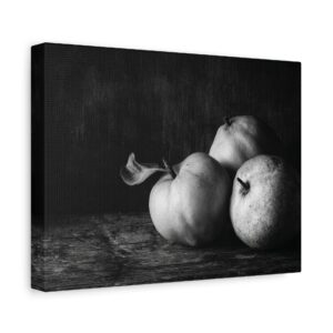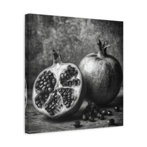 L’éclairage dramatique et le fond sombre confèrent à cette œuvre une dimension contemporaine parfaite pour une cuisine moderne ou une salle à manger design. Les reflets brillants et les tons profonds de bordeaux apportent une touche de sophistication qui s’harmonise idéalement avec un intérieur épuré.