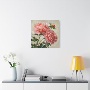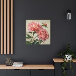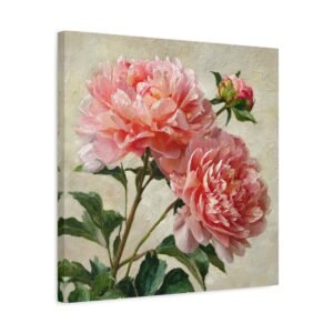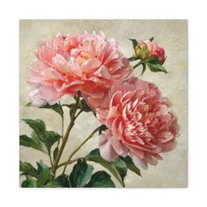 Plongez dans la beauté botanique avec notre Tableau Pivoine Rose. Cette œuvre d’art romantique met en scène de magnifiques pivoines roses en pleine floraison. Les couches de pétales froissés aux tons doux de rose et de corail, les gouttes de rosée qui scintillent sur les délicates têtes de fleurs, et les tiges et feuilles verdoyantes créent un contraste naturel. Peint dans un style botanique classique avec un grand souci du détail et une texture réaliste, ce tableau apportera une touche d’élégance à votre intérieur.