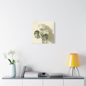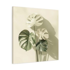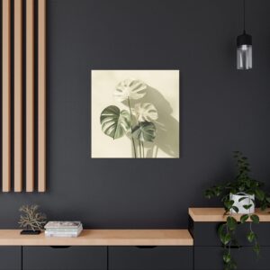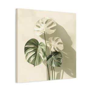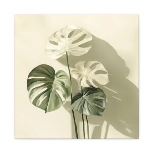 Laissez-vous séduire par cette composition raffinée de feuilles de Monstera Deliciosa, où la nature s’exprime dans toute sa délicatesse. La palette de couleurs subtile mêlant vert sauge et tons crème crée une atmosphère apaisante qui s’intègre parfaitement dans votre intérieur.