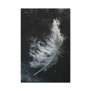 Les nuances subtiles de blanc dansent avec les ombres dramatiques, créant une atmosphère à la fois mystérieuse et apaisante. La texture soyeuse de la plume, magnifiée par un éclairage studio sophistiqué, apporte une dimension tactile qui invite à la contemplation.