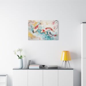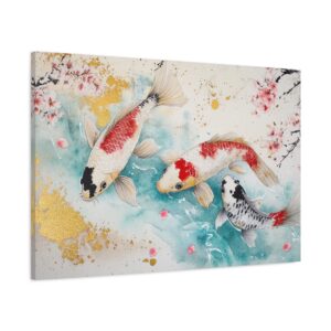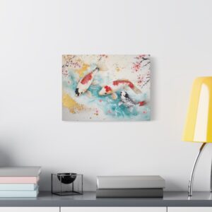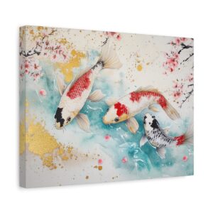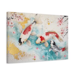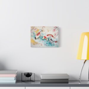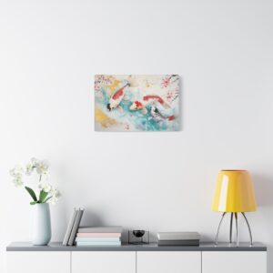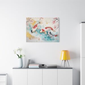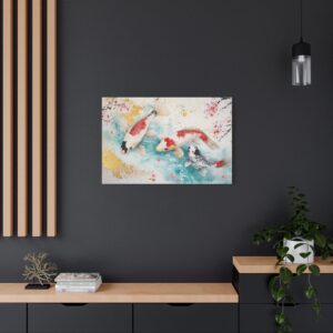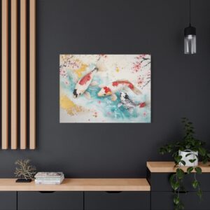 Plongez dans l’univers envoûtant de l’art japonais avec cette œuvre contemplative mettant en scène un majestueux poisson koï. Les pétales de cerisier dansants et les ondulations turquoise créent une atmosphère paisible, parfaite pour insuffler une touche de sérénité à votre intérieur.