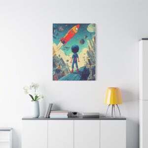 Pour maximiser l’impact de cette œuvre, associez-la à des accessoires déco cosmic et des éléments futuristes. Ce tableau trouvera idéalement sa place au-dessus du lit ou face au bureau d’études, créant un espace stimulant où votre petit héros pourra laisser libre cours à ses rêves d’aventures.