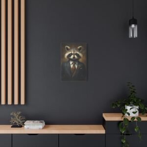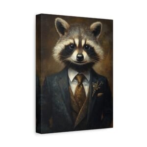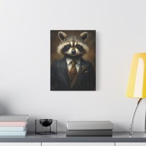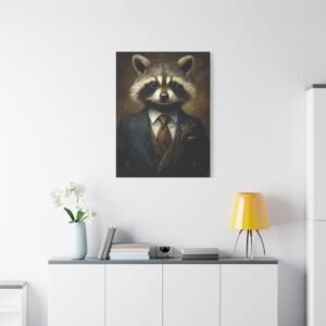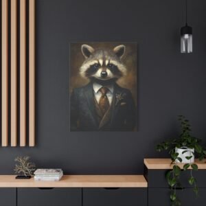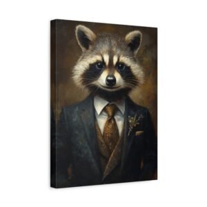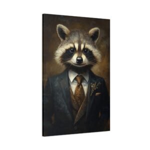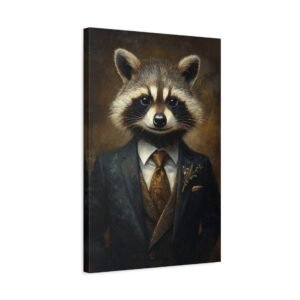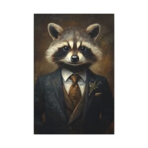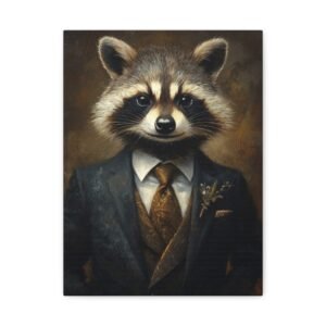 Laissez-vous séduire par cette œuvre d’art unique mettant en scène un raton laveur distingué dans son plus bel apparat. La cravate en soie et la pose majestueuse de notre gentleman à fourrure créent une ambiance à la fois sophistiquée et pleine d’esprit, parfaite pour insuffler une touche d’originalité à votre intérieur.