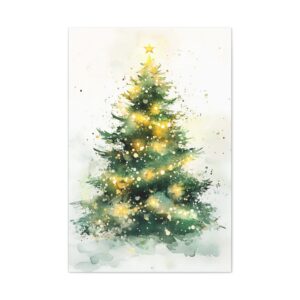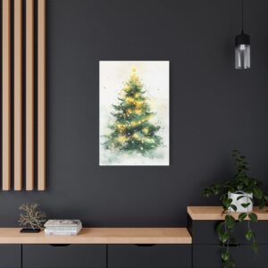 Plongez dans l’atmosphère enchantée de cette aquarelle éthérée où le sapin de Noël se révèle dans une douce luminescence. Les coups de pinceau délicats sur le papier texturé créent une ambiance de rêverie hivernale, où chaque détail respire la sérénité des fêtes nordiques.
