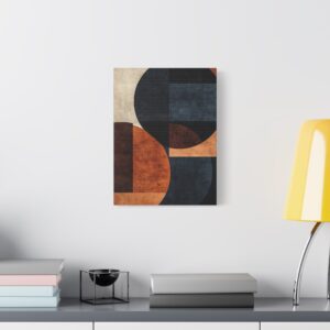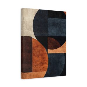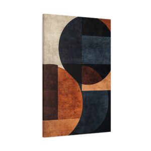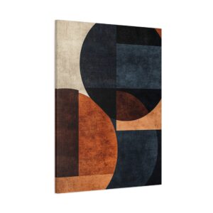 Plongez dans l’élégance du design nordique contemporain avec cette composition abstraite où le bleu marine profond rencontre les tons chocolat chaleureux. Les formes organiques s’entrelacent harmonieusement, créant un dialogue visuel captivant entre géométrie et fluidité.