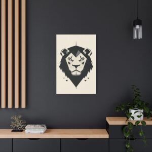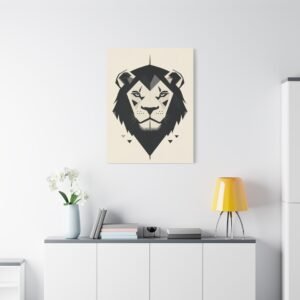 Le style minimaliste de ce tableau se caractérise par ses lignes épurées et ses formes géométriques, offrant une représentation moderne et élégante du lion. La palette monochrome renforce l’aspect contemporain de l’œuvre, s’intégrant parfaitement dans un décor nordique ou minimaliste.