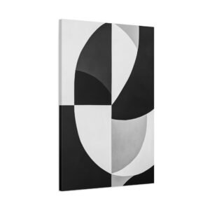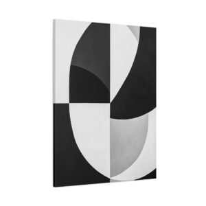 Découvrez la puissance du contraste monochrome avec cette composition abstraite saisissante. Les formes géométriques s’entrelacent dans une danse harmonieuse de noir et blanc, créant un équilibre visuel parfait qui capte instantanément le regard.