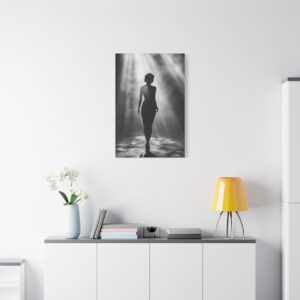 Ce tableau noir et blanc insufflera une atmosphère à la fois sophistiquée et onirique à votre intérieur. Les lignes épurées et la composition cinématographique en font une pièce maîtresse idéale pour une chambre à coucher élégante ou un salon contemporain.