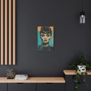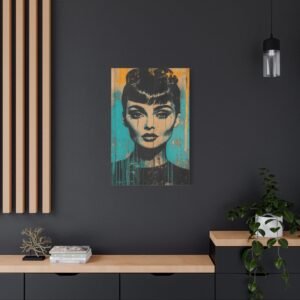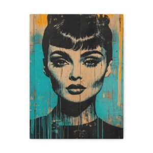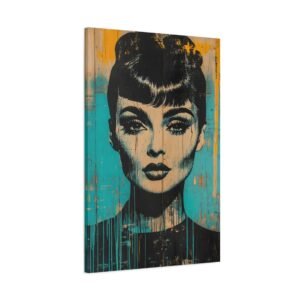 Découvrez l’élégance hollywoodienne réinventée dans un style street art audacieux. Le portrait emblématique d’Audrey Hepburn se réinvente en stencil art noir sur un fond urbain texturé, fusionnant parfaitement le glamour vintage avec l’art urbain contemporain.