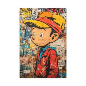Les textures de peinture aérosol apportent une dimension urbaine authentique, tandis que la composition dynamique mélange harmonieusement culture de rue et héritage de la bande dessinée. L’énergie vibrante des graffitis transforme ces héros classiques en icônes street art captivantes.