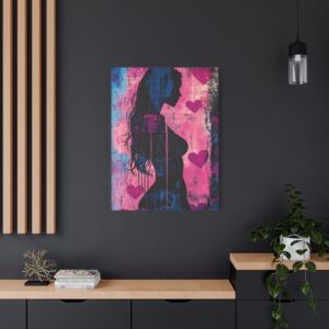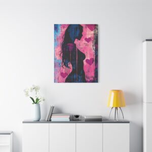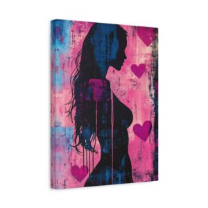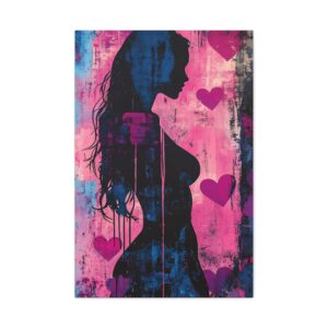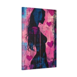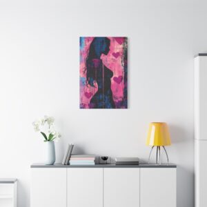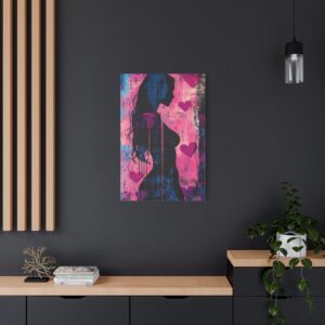Immergez-vous dans l’univers vibrant du street art contemporain avec cette œuvre audacieuse qui marie élégamment la sensualité féminine et l’art urbain. Les tons électriques de rose, bleu et violet se mêlent dans une composition dynamique qui captive immédiatement le regard.