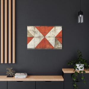 Plongez dans l’univers vibrant du street art contemporain avec cette œuvre saisissante aux tons terracotta chaleureux. Chaque détail capture l’essence brute et authentique des murs urbains, où les textures vintage et les motifs géométriques se mêlent avec audace.