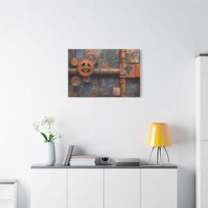Plongez dans l’univers fascinant de l’ère industrielle avec notre tableau style industriel captivant. Cette œuvre d’art contemporaine marie habilement la robustesse mécanique et l’élégance minimaliste, créant un point focal saisissant pour votre espace de vie ou de travail.