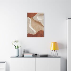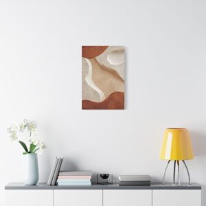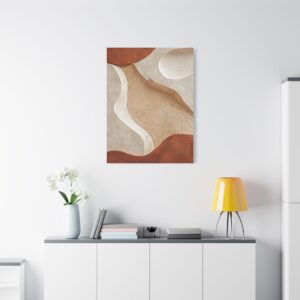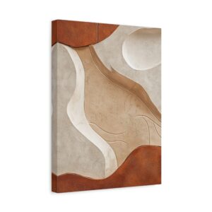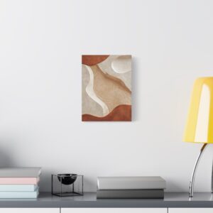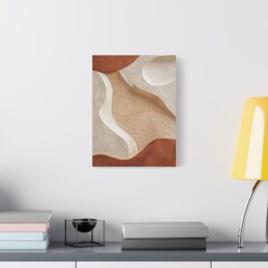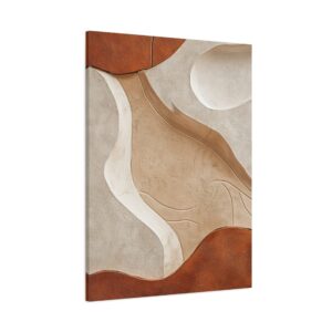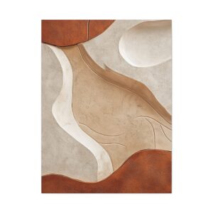 La palette neutre texturée et les couleurs terreuses rappelant le désert créent une ambiance apaisante et contemporaine. Les formes fluides et les éléments subtilement superposés ajoutent de la profondeur à cette composition raffinée.