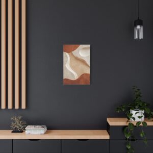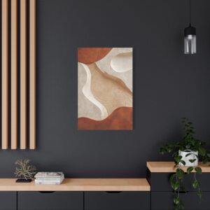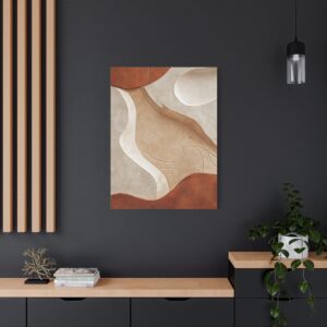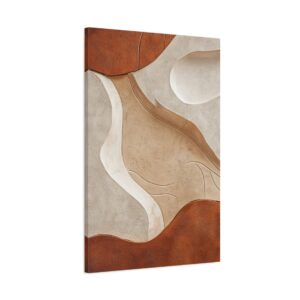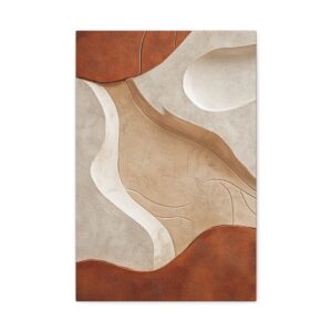 Plongez dans l’élégance minimaliste avec ce tableau abstrait aux tons chauds de terracotta et beige doux. Inspiré par des formes organiques évoquant la poterie, cette œuvre d’art apportera une touche sophistiquée à votre espace de vie.